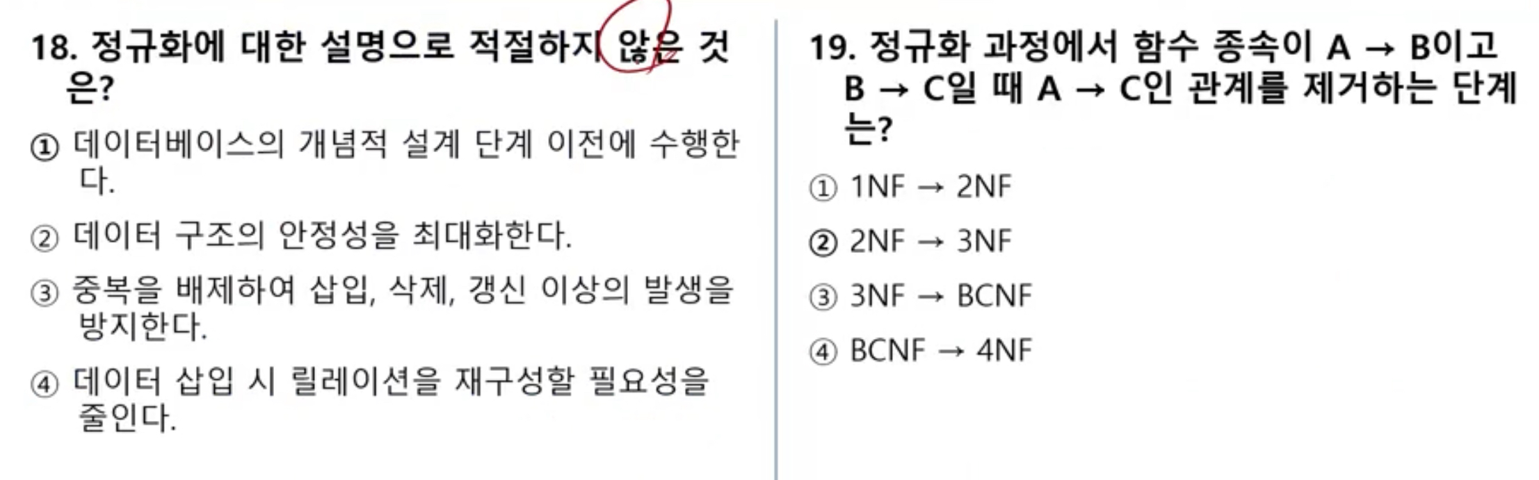 - 데이터베이스의 논리적 설계 단계에서 수행