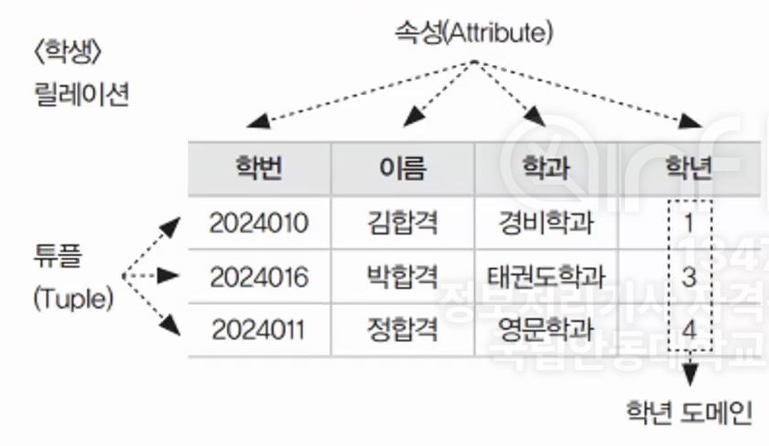 - 도메인 무결성: 각 속성값은 해당 속성 도메인에 지정된 값이어야 한다는 제약 조건