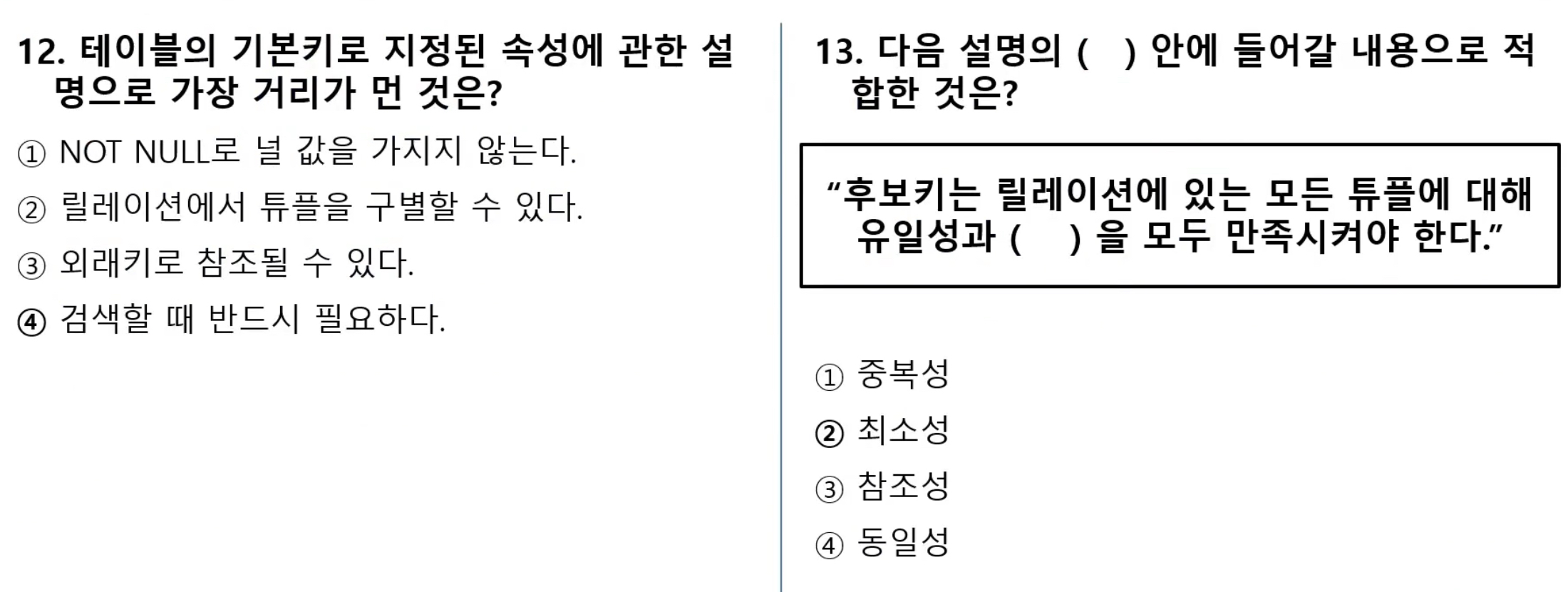 - 테이블의 각 레코드를 고유하게 식별하는 필드나 필드의 집합