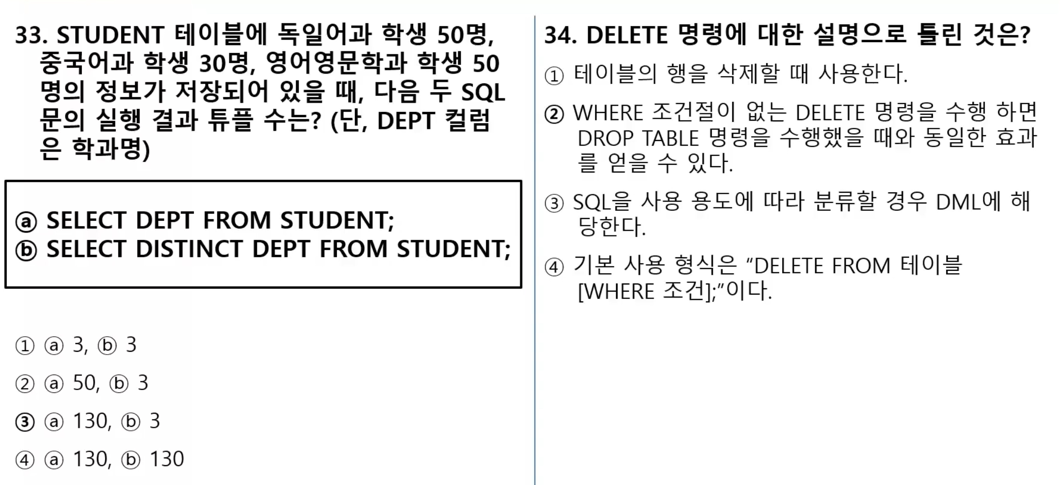 - 데이터베이스 대부분에서 테이블을 삭제하면 인덱스도 같이 삭제됨