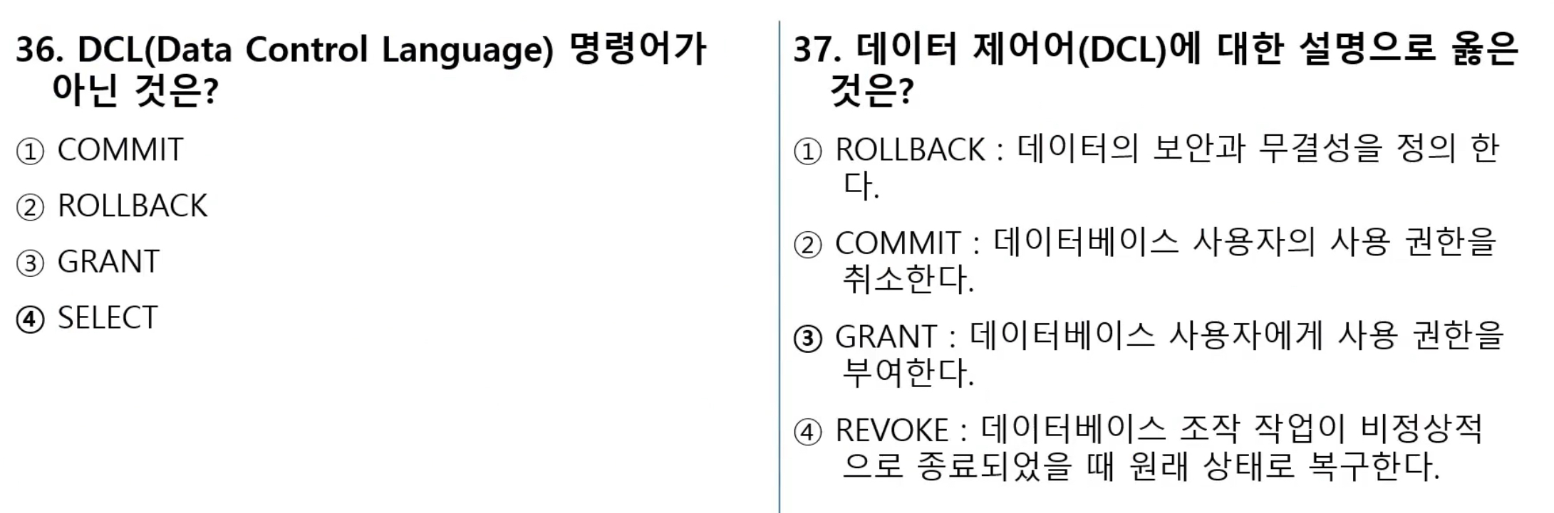 - GRANT: 데이터베이스 사용자에게 사용 권한 부여