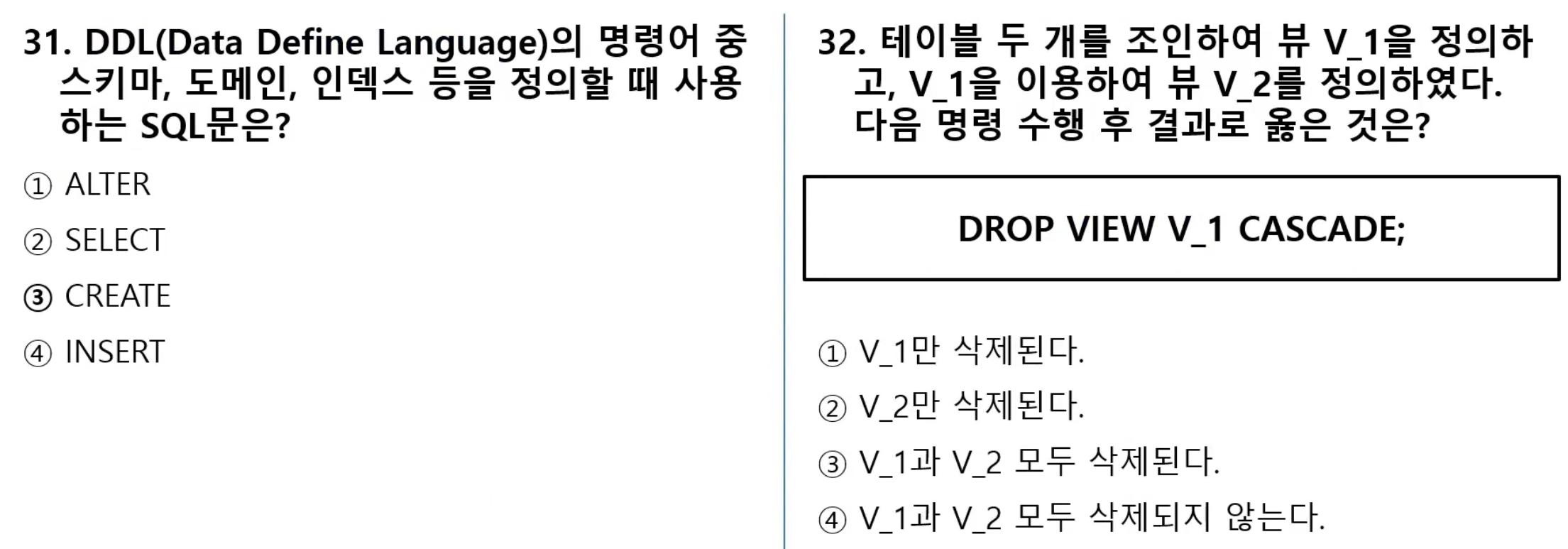 - 하나의 뷰 제거 시 그 뷰를 기초로 정의된 다른 뷰도 함께 삭제