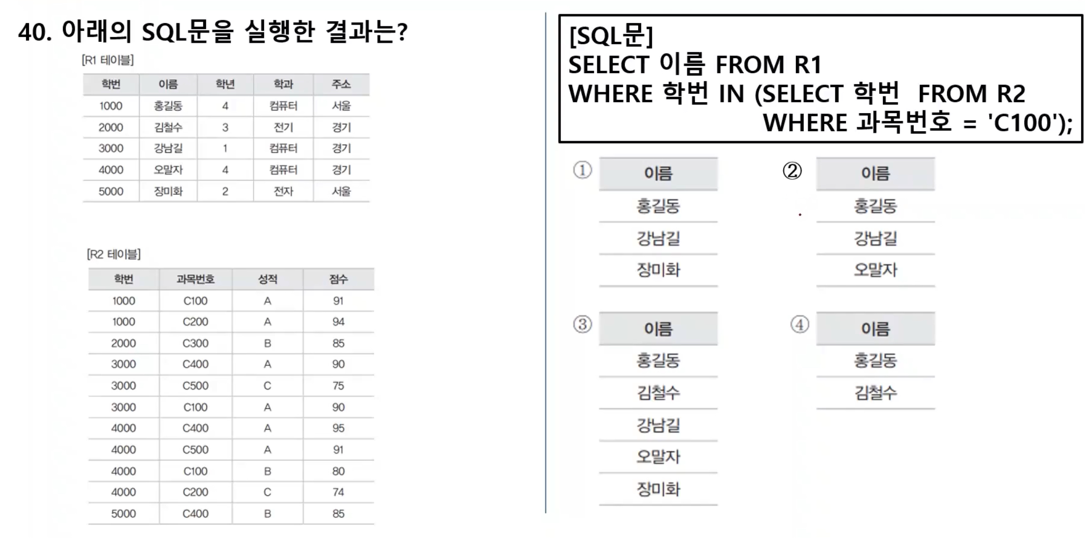 - 하위 질의문은 하위 질의를 먼저 처리하고 검색된 결과는 상위 질의에 적용되어 검색됨