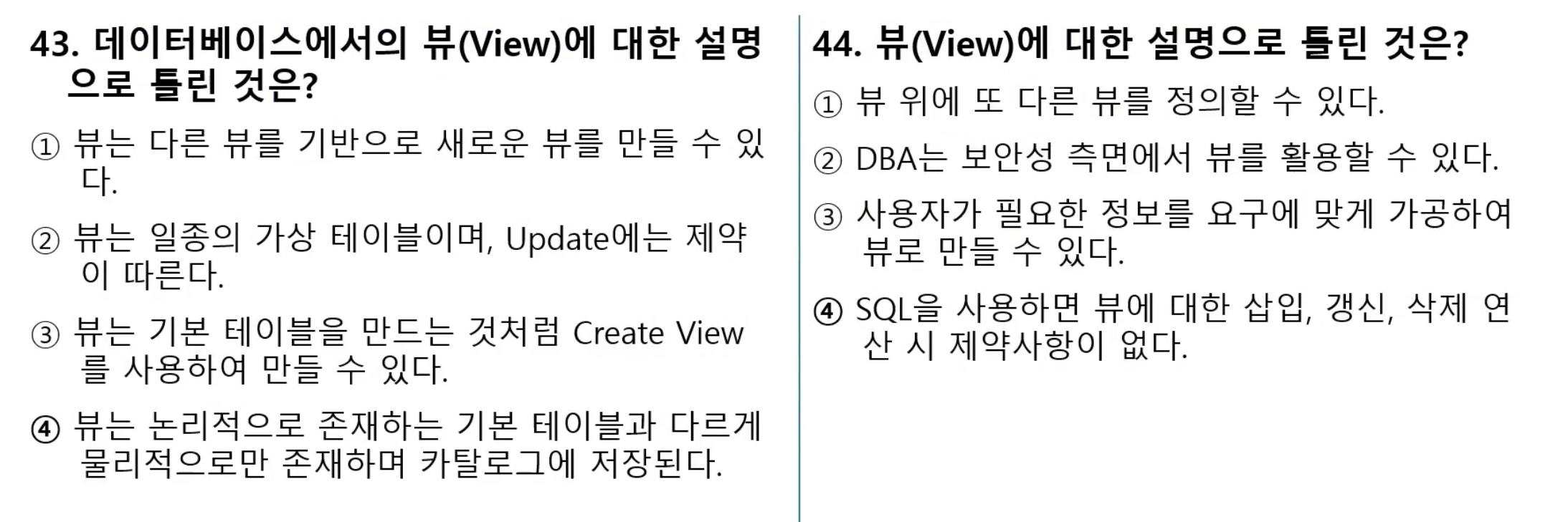 - 뷰가 정의된 기본 테이블이 제거되면 뷰도 자동적으로 제거