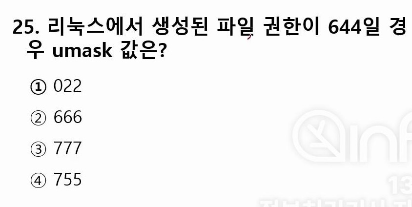 - 파일 초기 권한 666 - ? = 파일 권한 644 ( umask = 022)
